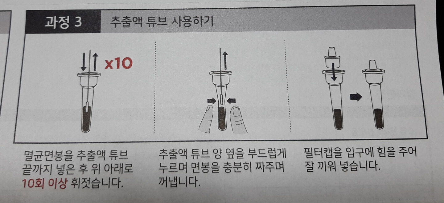 콧속에 넣었던 면봉을 추출액 튜브에 넣고