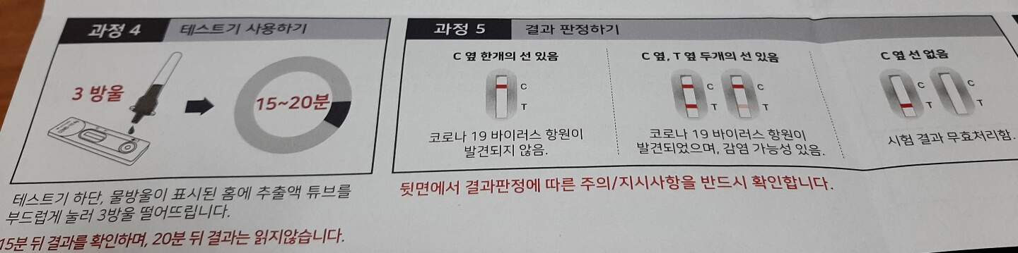 이제 코로나 자가 진단 키트를 사용해봅니다.